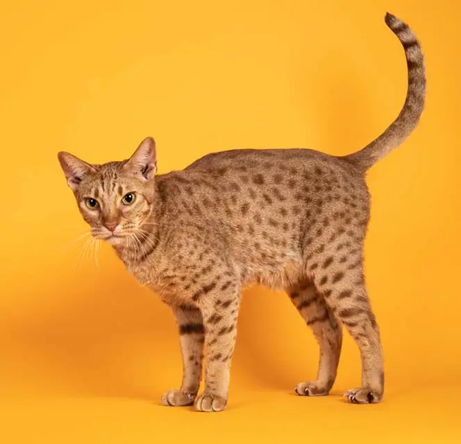 O El abrigo tabby en estos se marcan ya que los pelos individuales son de diferentes colores. Los gatos OSE provienen de Abisinia, que ahora es Etiopía. Se encontraron algunas abisínias momificadas en las tumbas egipcias antiguas.