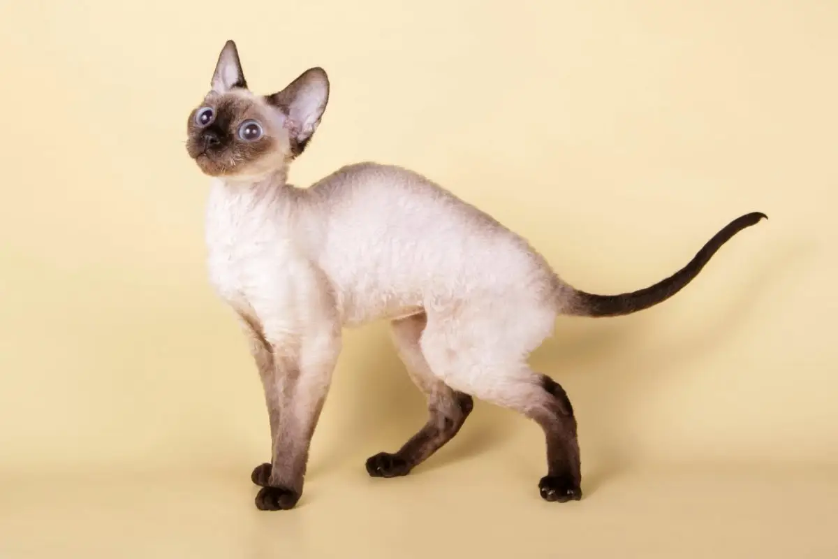 Devon Rex es una pequeña carrera, el promedio que surgió de una mutación espontánea en 1959. Los Devões son conocidos por su inusual apariencia rizada y su apariencia de duendes.